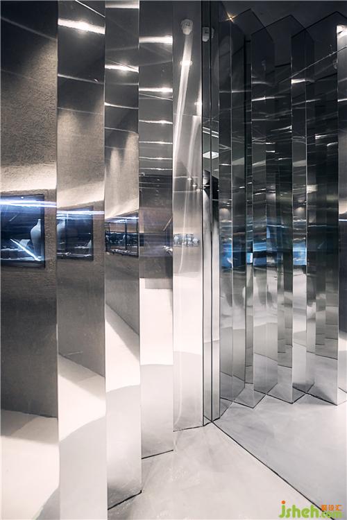 镜面棱柱前,看着反射出的无数的自己,陷入平行时空之间与自我的相互对话,无数个平行时空是否也存在着无数个正在进行却无解的闭环?是否汇集着你无数个选择造就的千差万别却可能殊途同归的人生?自由的时空和记忆,将过去、现在、和未来交织在一起,编织着过去与未来的组曲。镜面棱柱依次排列,镜像空间放大了视觉感官,同时也给人以视觉冲击,隔离外界干扰,使消费者更纯粹地沉浸于空间之中。