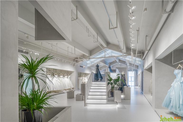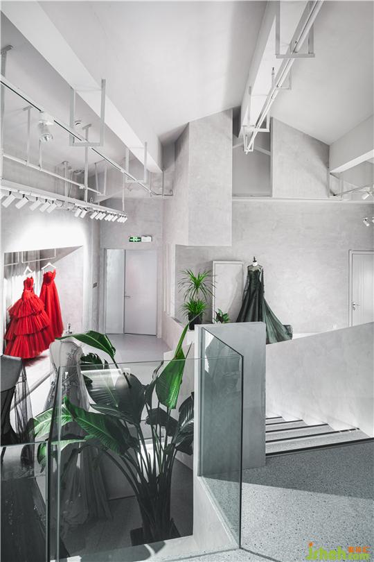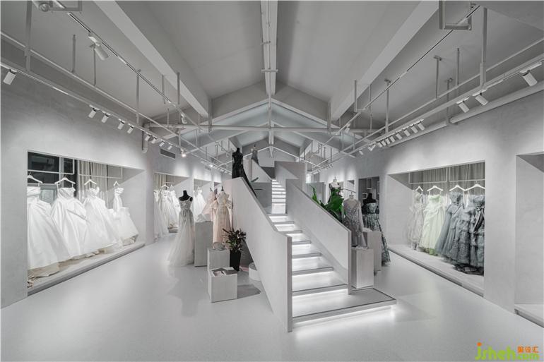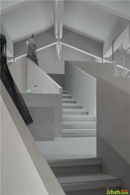 通过楼梯营造出不同的高度让空间形成了视觉上的互动,当你在寻觅自己的婚纱之时,展厅设计也能在此之中看到或许也在寻觅适合自己嫁衣的“她”。