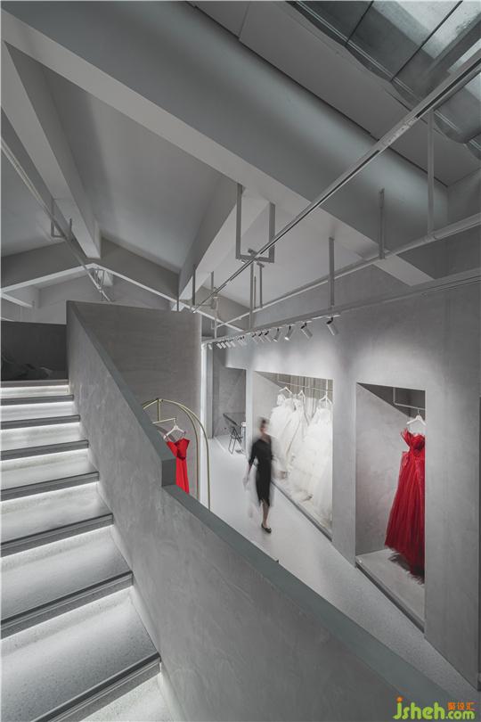 The different heights created by the stairs allow the space to form a visual interaction. When you are looking for your own wedding dress, you can also see the "her" in it, perhaps also looking for your own wedding dress.