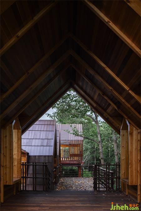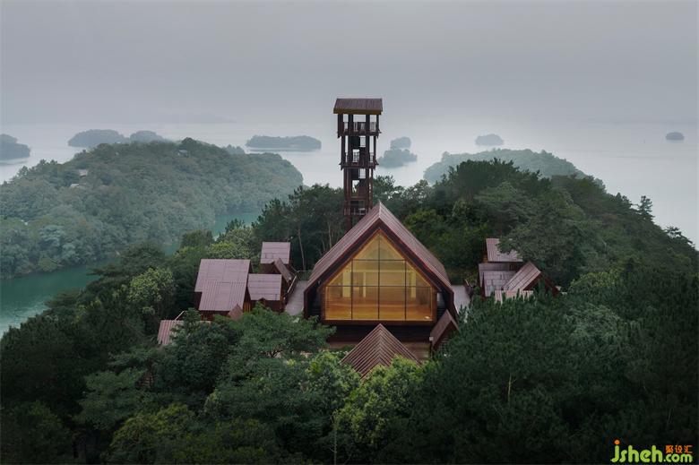 The Wooden Cabin Town is located on an island in the West Sea of Lushan, southwest of Jiujiang, Jiangxi. It was designed by Shanghai Parallect Architecture Studio. The predecessor of this water area is Xiu River, one of the five major rivers in Jiangxi. From the 1950s to the 1970s, the Xihai Barrage, known as Asia's largest dam, was built here, and it formed a unique island in the lake area: like clusters of jungle floating above the water. And what we hope to present is a cluster of small wooden cabins floating above the jungle.