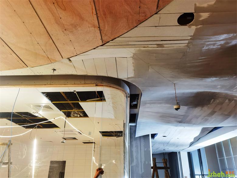 The curved-dynamic shape of the top surface design is derived from the process of continuous "evaporation and sublimation" of the aroma during the baking, and the moment before the water drops. The design interprets the dynamic process in the space, and increases the feeling of the theme and atmosphere. The production of the curved ceiling is interesting. Due to the construction costs, we do not choose the factory-prefabricated GRG modules, but determine the center point and intersection point of each dome in the 3D software. Then, making skeleton arch ribs according to different lengths. In the next, arch ribs are formed into space grids. Finally, dome surface is formed by wooden planks. All of these are hand-craft.