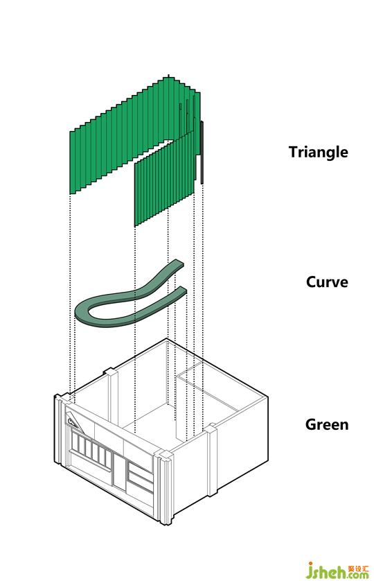 We hope to bring people some different experiences in this limited and regular space. This curve twisting in the space undertakes this task. It breaks the original dullness of the space, and more or less changes people's tracks and behavior in the space without affecting people's use. With furniture of different heights, people can enjoy the space. The flow of the curve in space and the turning point after touching the edge can also be understood as the slight aroma of pizza in the box.