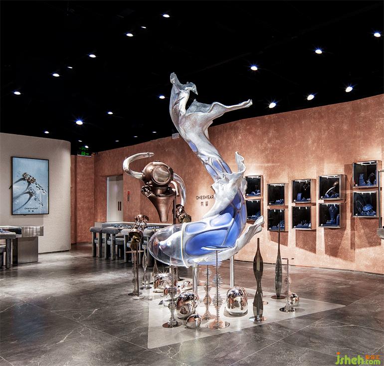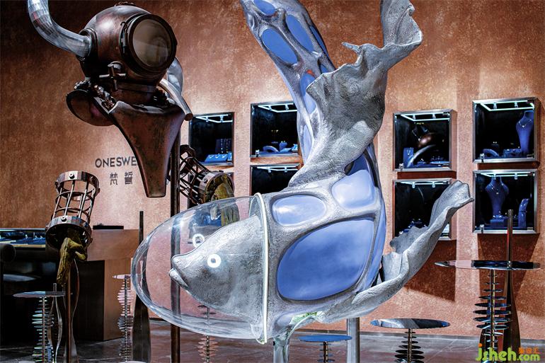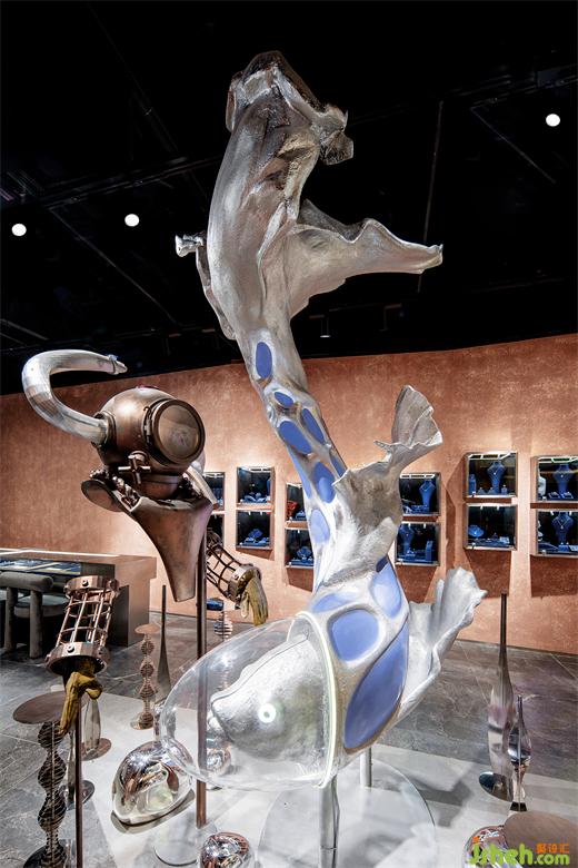 长沙珠宝店设计位于门店主入口中央最显眼处的艺术装置以组合的形式呈现,两个主体作为邂逅的主角各自呈现特质又和谐共存于深海世界。