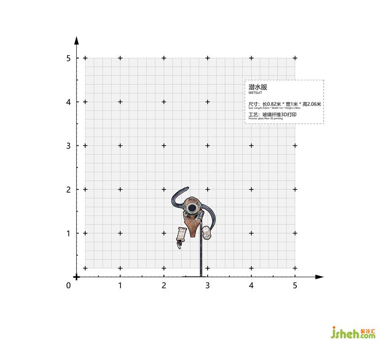 ▼装置“漫步”:形象参考老式潜水服, Installation "Roam Around" : old wetsuit reference