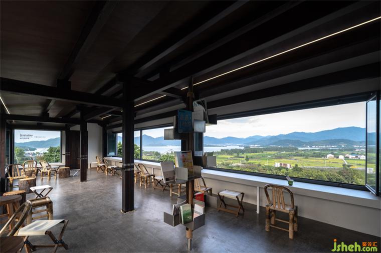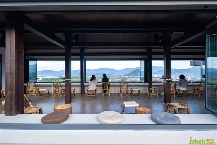 茶室中最引人注目的特点之一,便是朝向四明湖的一整片长条形折叠窗,占据了整整一面墙壁,犹如一个独特的取景框。茶室设计在宜人的天气里,这横向折叠窗可以完全敞开,让客人尽情欣赏美不胜收的景色,随时享受微风拂面的宜人感觉。