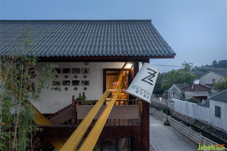 咖啡厅设计项目位于苏州太湖西山岛后埠古村落入口,推开二楼的窗,就能看到穿过古村的小河,后埠村现为中国传统村落,苏州市控制保护古村落。村落形成于南宋,古称梅梁里,明代后因禹期山前的湖湾设石码头(地名前湾),山后设停泊船只的船埠,更名为后埠。未经商业开发的古村经修缮保护后,也最大程度保存了自然和生活的气息。驿站的落成成为苏州近郊,让人停下脚步喘息的珍贵场所。因此本案设计希望在古村落的入口处,打造一个可以连接古今的驿站咖啡馆,让游客休憩的同时,领略历史村落的魅力,也让曾经无人问津的古村焕发生机。