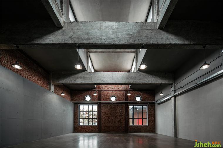 材料:在处理剥离面层后的墙体及梁柱时,我们使用了水性漆来保持其粗糙质地;在面对屋面开裂剥落问题时,我们使用了水泥漆以延续其工业空间氛围;在新建西侧连廊时我们使用了厂区内危房拆除留下来的红砖作为一种新与旧的连接;此外,我们也通过金属网、钢栏杆等材料来呼应其工业建筑属性。