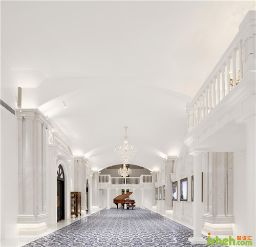 整个项目的设计空间是一个清末的兵工厂空间,原建筑基础老旧,项目设计改造受限条件多,平面布局的构思就历经了3个月;但是也因为建筑的单层层高为5.1米,南京展厅设计在这个老建筑的框架结构基础上,利用那个时代特有的柱帽结构,所以我们设计了一个交叉型拱券顶的廊,一举打开了项目改造平面上的“僵局”,那么原本BOJEM定义的珠宝艺术中心也就变成了珠宝艺术廊的概念。同时因为BOJEM的产品为法国“花丝镶嵌”工艺的珠宝首饰,所以整个空间以清新、亮丽、现代为基调而形成轻盈、活泼的建筑形态,打破混凝土方盒带来的凝重和沉闷,追求以设计手法在室内空间能呈现建筑的整体雄伟造型,和新古典主义特征的法式风格。