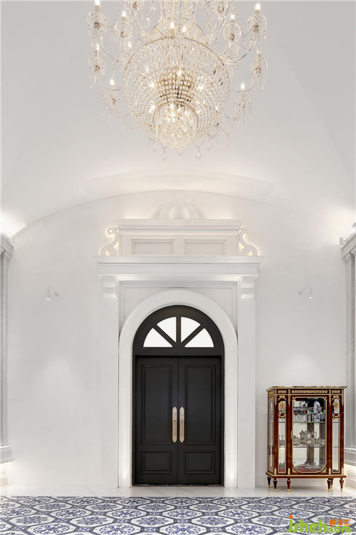 虽然沿用了法式建筑上的一些设计手法和部分装饰元素,但是整体基调却区别于大众所理解的奢法,而是轻法式的概念。这里的“轻”则是不是简化的意思,而是在色调上我们以干净的白色为基调,南京展厅设计同时每个白色使用的材质不同、肌理不同,突出整个空间的颜色细节,从而达到我们想表达的法式风格中清新、亮丽的特点;在建筑形式上,我们用了典型的圆形廊厅,柱廊、拱券造型、廊桥、山花及卷曲的莨苕叶等表达法式的“奢”和空间的丰富性。