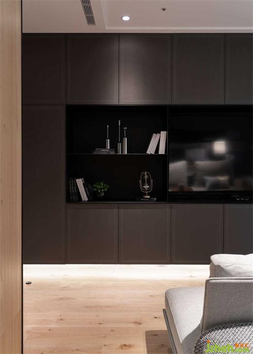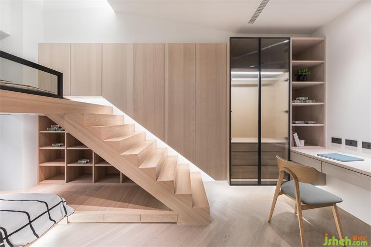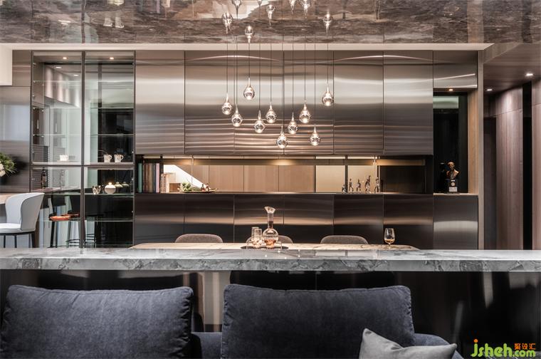 复式设计团队跳脱格局限制,将毛胚屋形式、规划为三房二厅二卫。客厅主墙选用天然石材,以其特殊纹理,与建筑环伺公园环境呼应。与餐厅采开放式设计,立面连续天花、设计ㄇ字型门拱造型,界定二者区域属性;窗边吧台成为最佳观景区域,也增加生活机能。