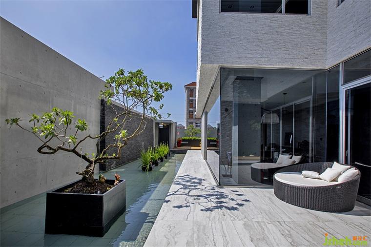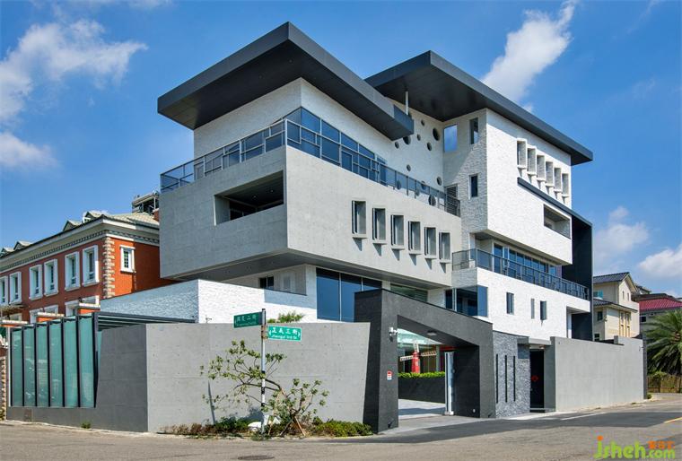位于阿里山脚下的本案,我们用了层层堆栈的山峰作为设计的主轴,羣山中,高低起伏延绵不绝的层峰,就化为建案的屋檐线条,而本案因位于地震带,所以防震是我们首要的工作,别墅设计基础上,我们采用了筏式基础的设计,而结构上我们采用了S.R.C.的结构设计,抗震系数的方面,我们也抓到8级的抗震系数,而且我们也采用大量的Lo-e玻璃,来达到美观又能达到节能的效果。而本案也运用大量的清水模,而屋顶方面也采用了铝质包板来减轻建筑的重量,而景观方面我们刻意将建筑物及围墙加高,利用其高低落差做成水景,彷彿是在一座小岛之中与世隔绝,即能保有隐私又能适度的降温,是一个兼具环保与美学的完美结合。