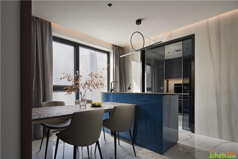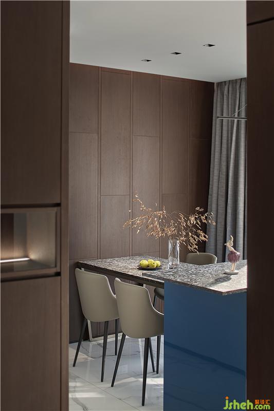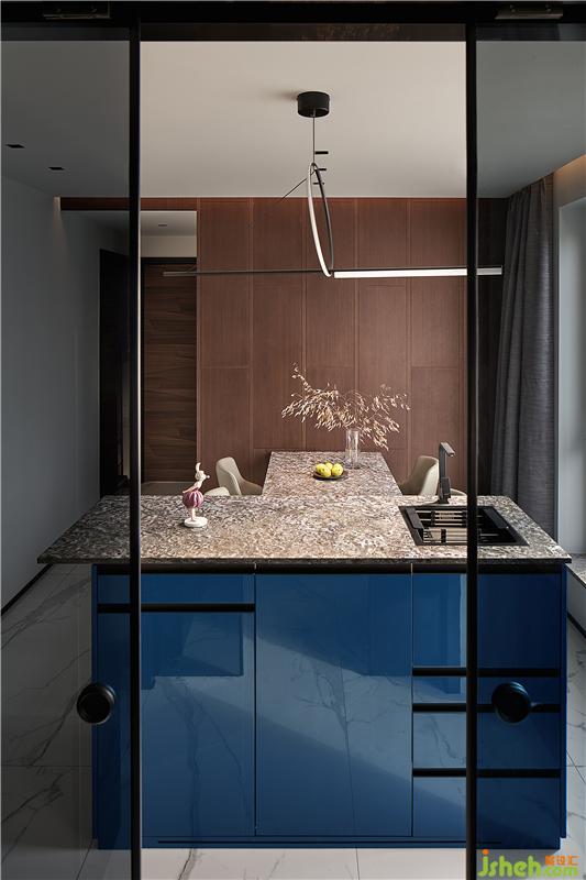 加以蓝色吧台点缀