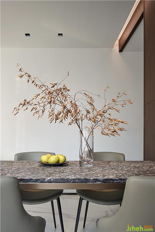 地面采用大规格鱼肚白岩板