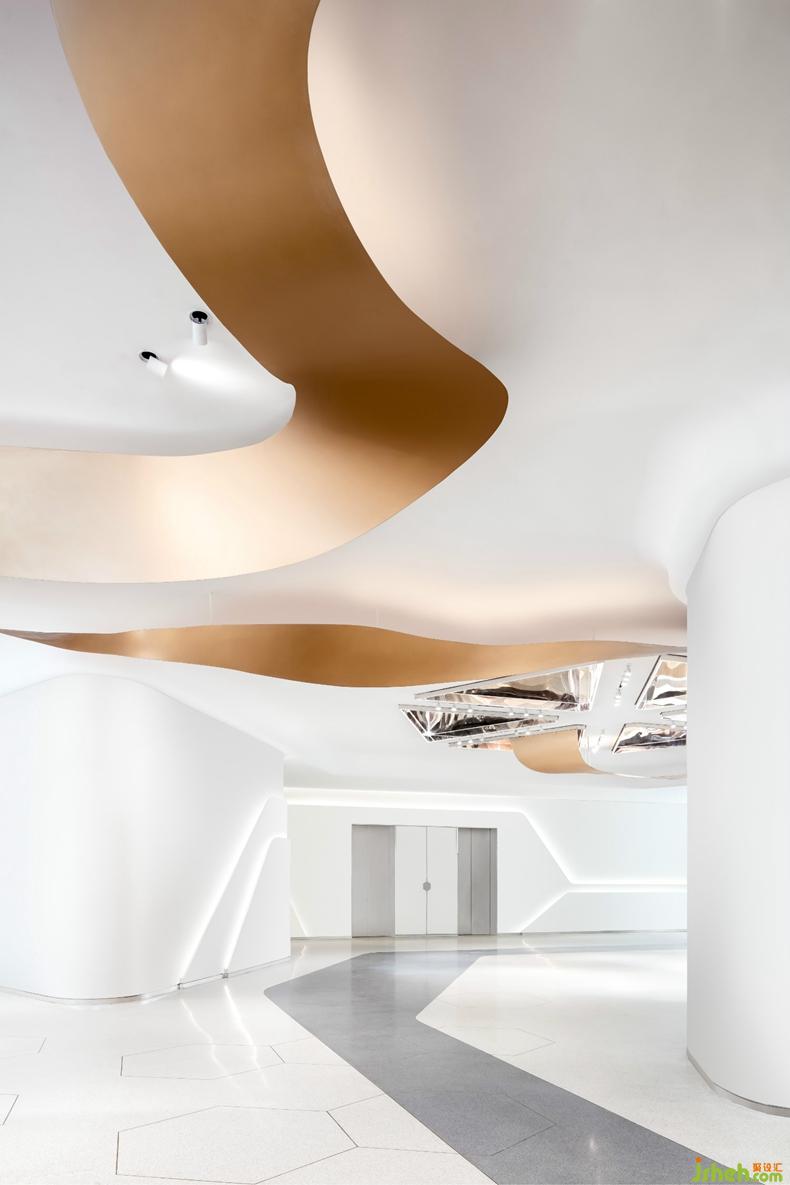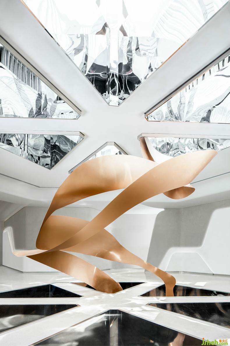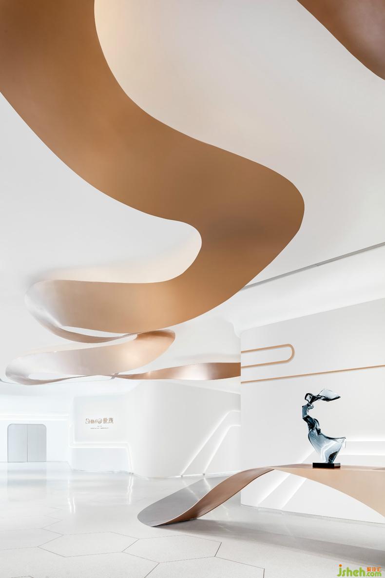 飘带如长卷,将外部的自然山水引入展厅内部,结合中国传统的山水画的意境。深圳装修公司
