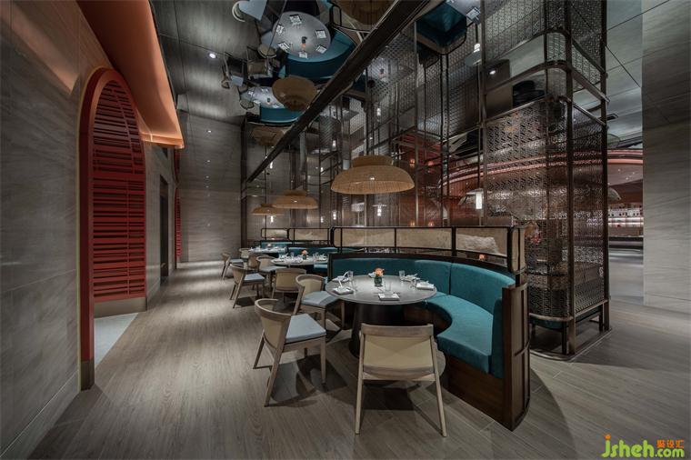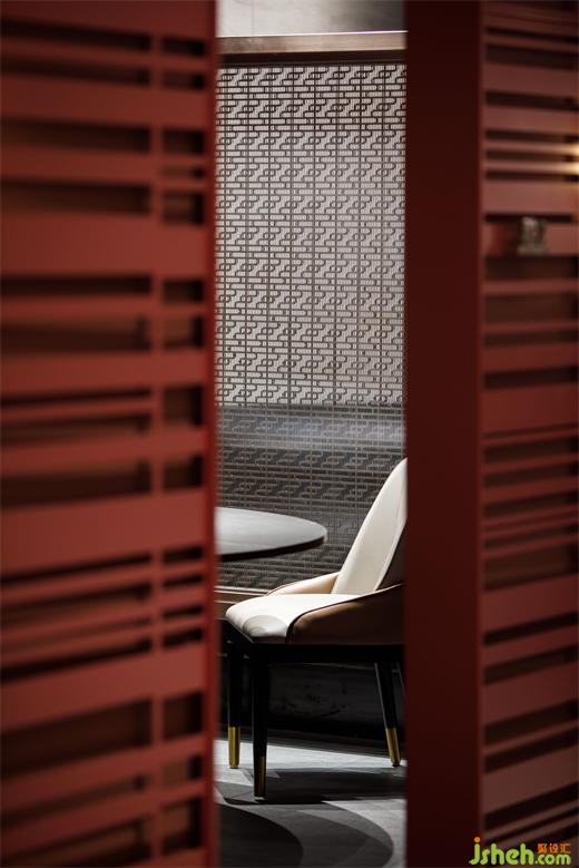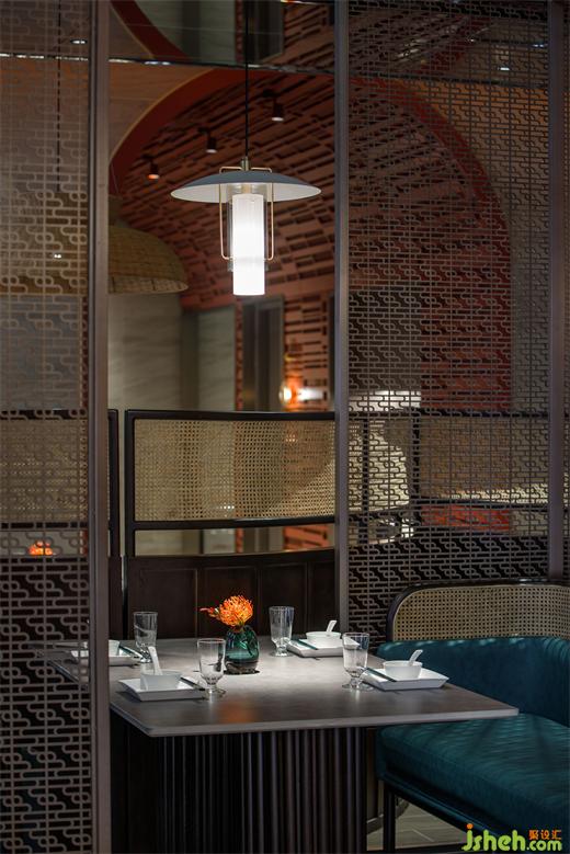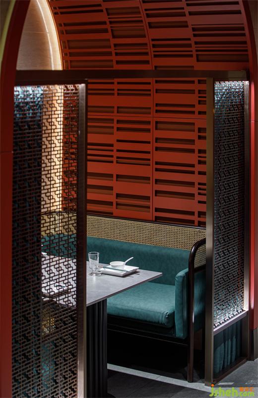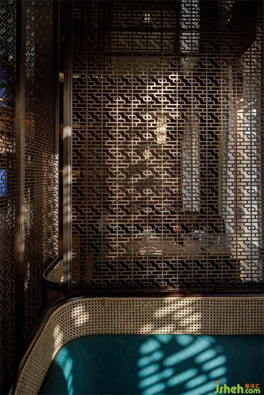 古铜色金属格栅是从南泥湾logo的演变而来,餐厅设计提高了空间质感的同时解决了散座区宾客的隐私问题,阳光穿过格栅,极具中国意境美。