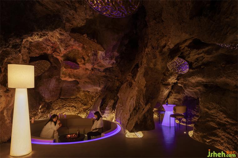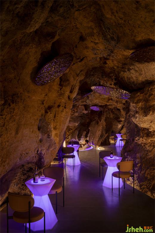 被山体横穿的一部分室内空间,民宿设计师将它打造成伏羲山最具特色的餐厅包间,让人们在美食中感受原生态风土乡情,体验靠山而食、依山而居的生活方式。