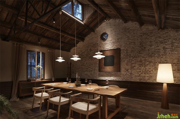 无论是就餐或是其他活动,这个空间都可以胜任。透过天窗,院外的松树静谧的拥护,为室内增添了一份宁静与美好。