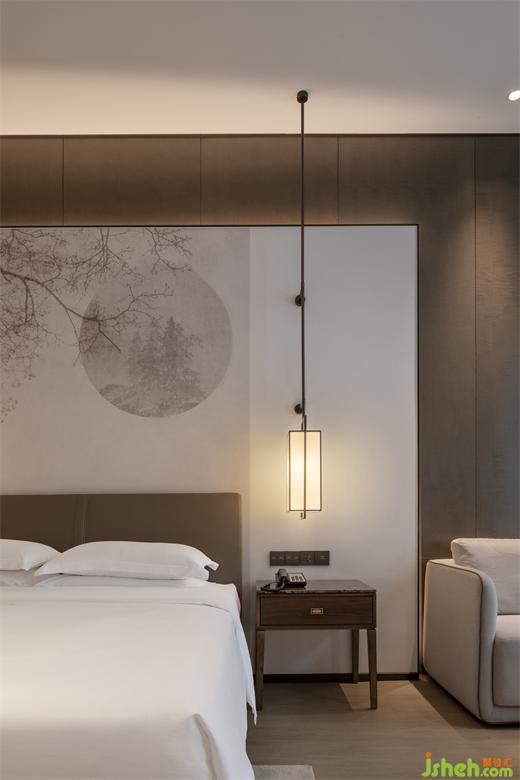 基于黄河迎宾馆绿树成荫的环境背景,在设计风格上庭院的设计更加留白,宾馆设计以风雅意境衬托建筑的简洁,在室内细节的陈设处注重文化底蕴的表达,呈现阅历者的生活印记。