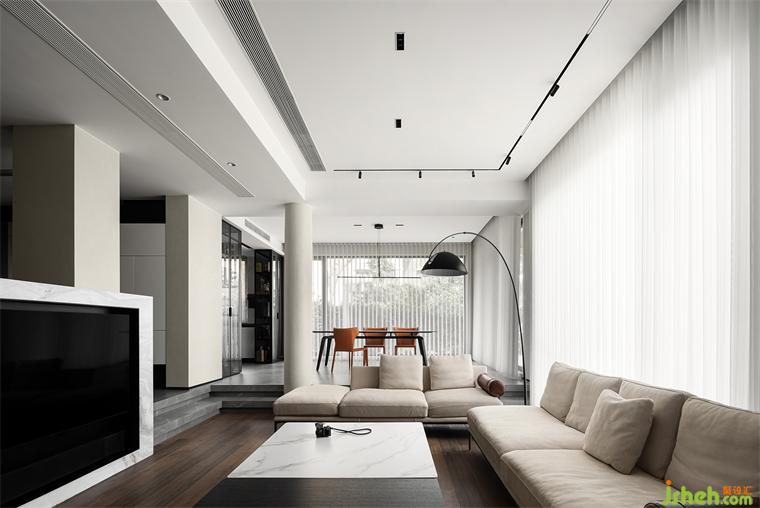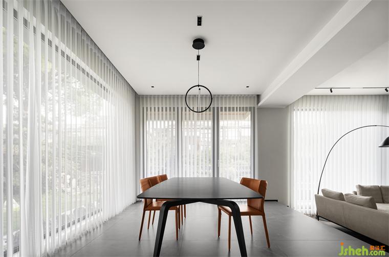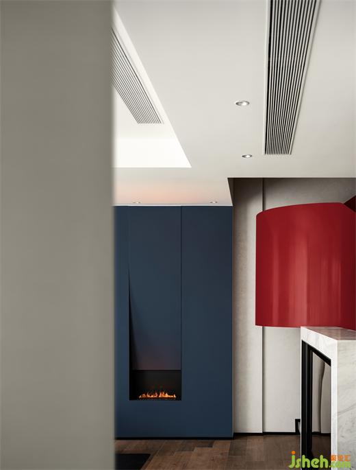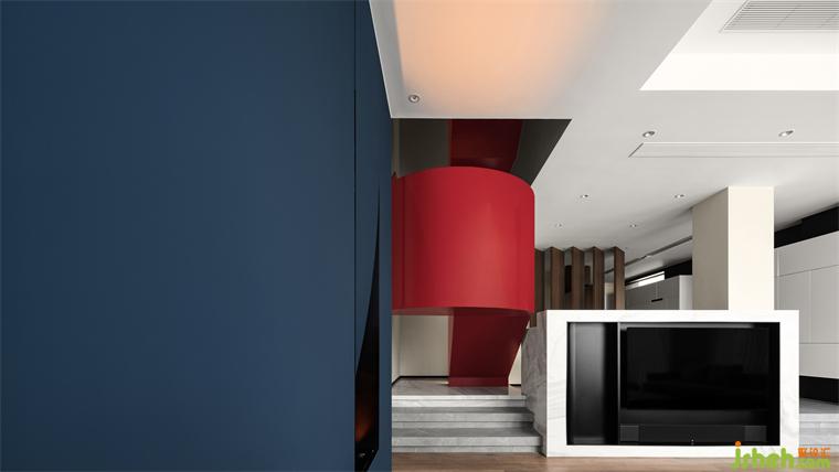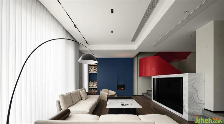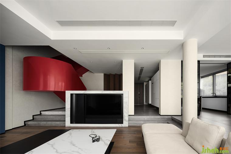 别墅装饰以直线和直角作为基准语言,以几何图形作为基本元素,将作品的色彩限制在原色、黑色和白色上,造型限制在横向与垂直的韵律节奏上,设计师将蒙德里安的艺术语言应用到空间设计中,让居住空间兼具理性的秩序和朦胧的美感。