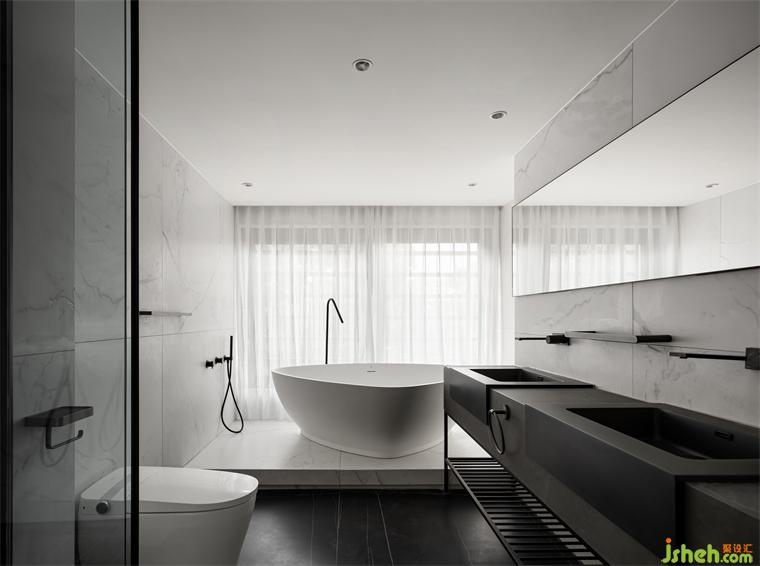 红色的旋梯,蓝色的涂料,米黄色的家具,黑白的茶几,线性的黑色铁艺灯具,白色的乳胶……以蒙德里安的手法编织的物象之网,是用极简的方式向艺术致敬。