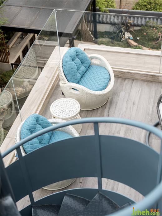 露台是放飞心绪之地,循旋梯而上,抵揽胜之台。走进良夜,仰可观星辰万象;极目之处,便是蠡湖万顷湖光。
