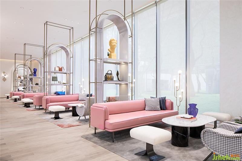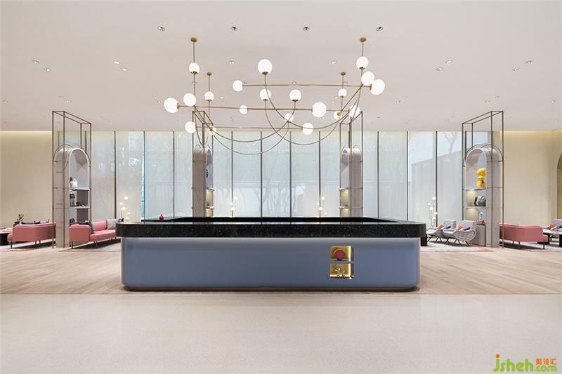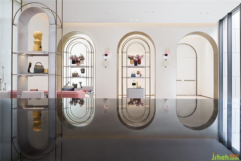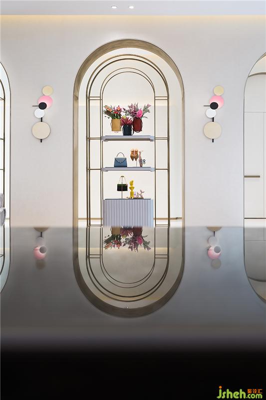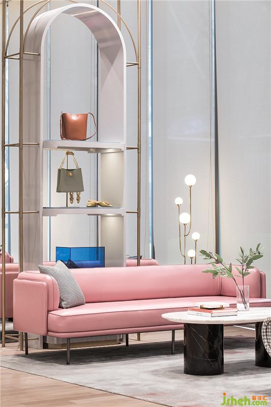 移步深度洽谈区,这种购物导向的参与感取代传统的“单向传播”,了解消费者的内心与感受,进行了一场深入内心的对话。取自于甪直地源文化中的暖白成为空间主调,在此基础上糅和脏粉、金色和青灰色,更具有靓丽女性色彩的空间性格一览无余。