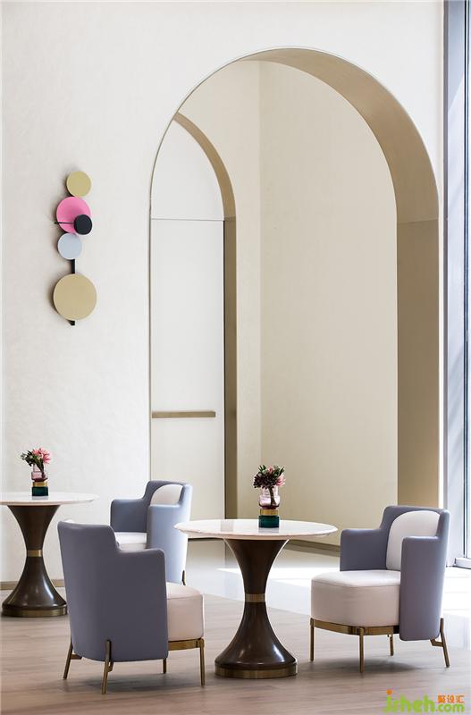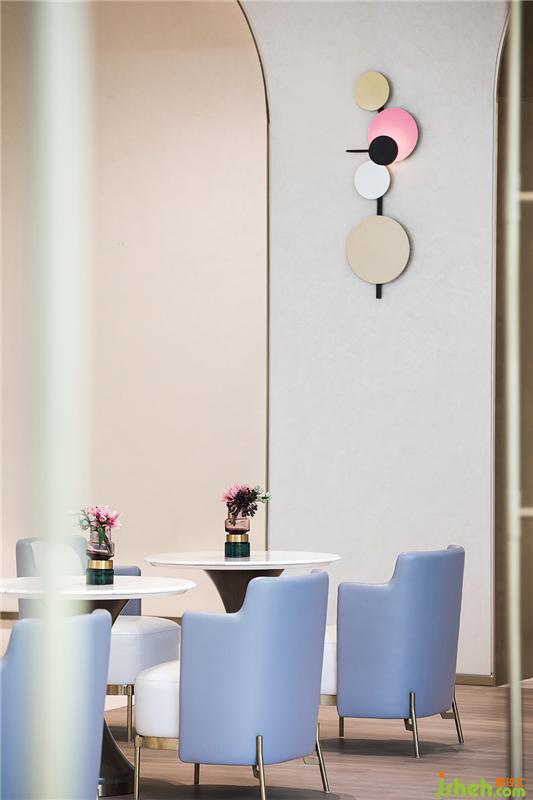进入洽谈区,就仿佛坠入了无边奇幻的冰雪世界,水蓝色基调为整个场域撑起静谧而平和的不俗气质。而细节处浅粉和鹅黄点缀的装饰,使谈话被温馨轻柔的氛围包裹。