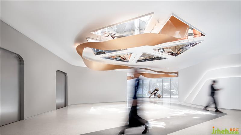 飘带如长卷,将外部的自然山水引入展厅内部,结合中国传统的山水画的意境。