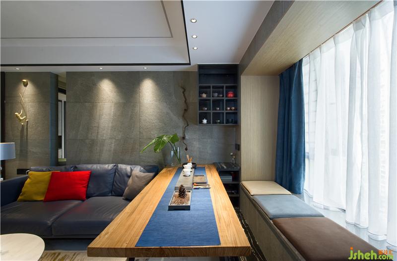 客餐厅为一体无主灯设计显得整体空间宽阔,餐厅吧台的设计满足业主生活习惯使用上更为方便。在采光上设计运用了厨房推拉门到顶设计手法大气又美观,灯光设计表现也给了整个空间增加了灵魂。过道的装饰柜以及客厅电视背景装饰柜大大的满足了业主的储物功能。装饰公司
