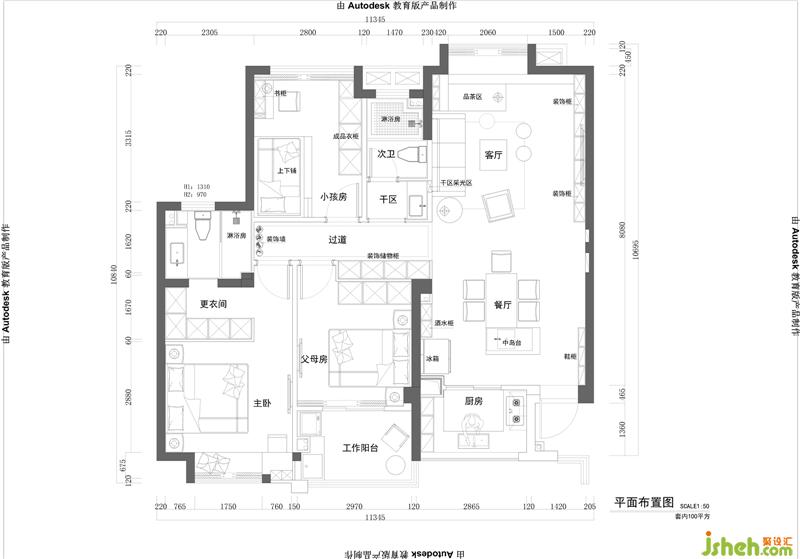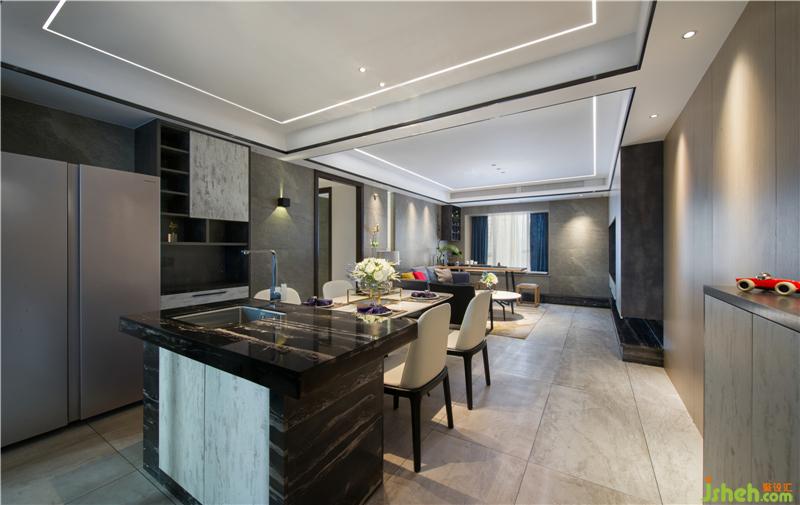干区与沙发背景连为一体“借”客厅的一缕光线使整个空间更显得通透,从干区往客厅看增加了美感,在不同光线的作用下,自然细密的肌理显露出不同层次的色彩,方寸间勾勒出碎碎念与小欢喜,层层铺开温馨的生活碎片。