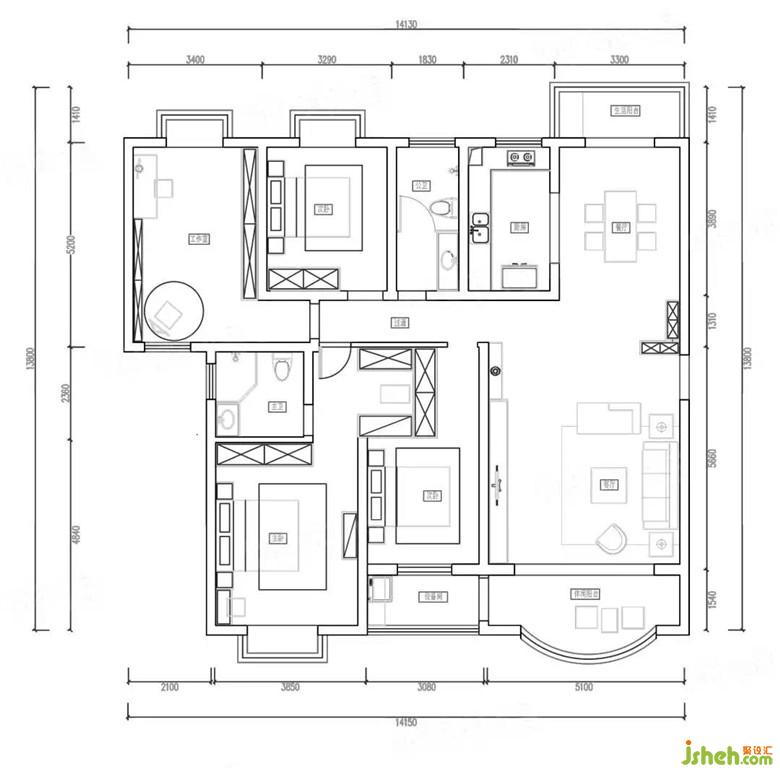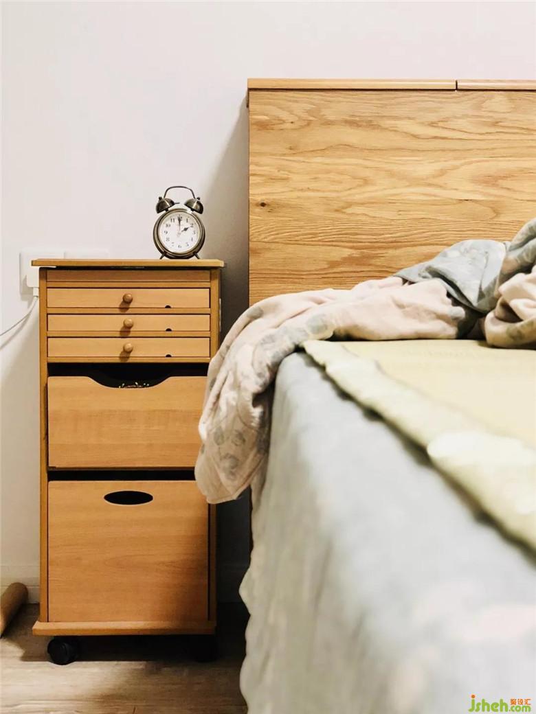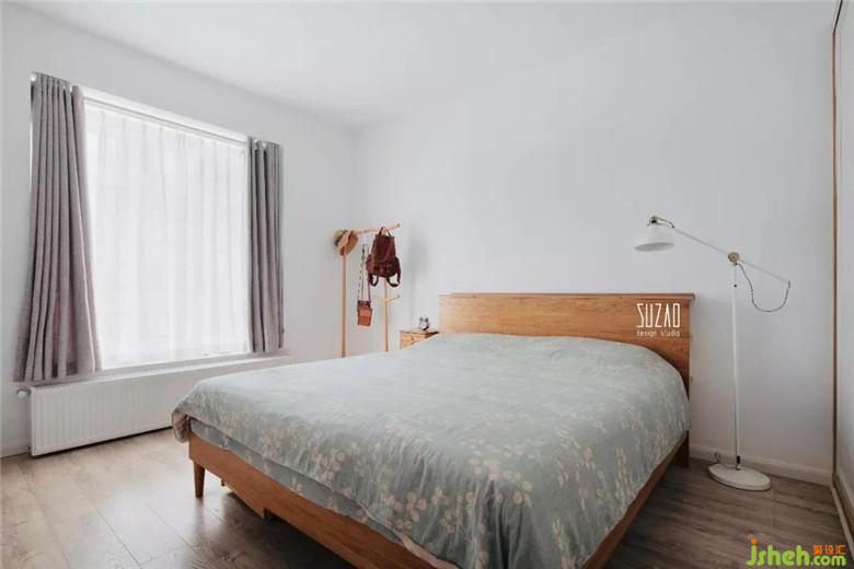 主卧的软装搭配色彩延续客厅的颜色,白色的墙体,搭配舒适的灰色床品及枕头。