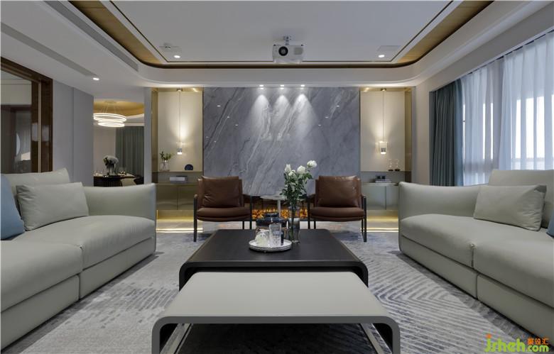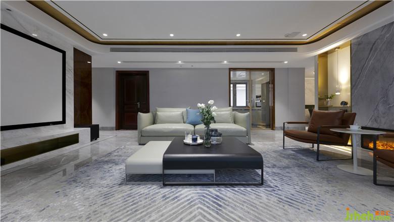 270㎡的现代风大尺度空间中,设计师运用黑白的简约色系为主视觉,佐以温润软装与金属线条,呈现恰到好处的奢华感。金都海尚的设计,以人的尺度规划空间,梳理空间的水平与垂直动线,承袭诗意和温润,以金属展现时尚与奢华,通过富有艺术感的美陈和家居,营造诗意的栖居空间。设计师将“雅奢”作为空间设计的格调核心,以现代灰与白为主色基调,用自然光影和家具陈设的点缀以及壁炉使其焕发出艺术生命力。