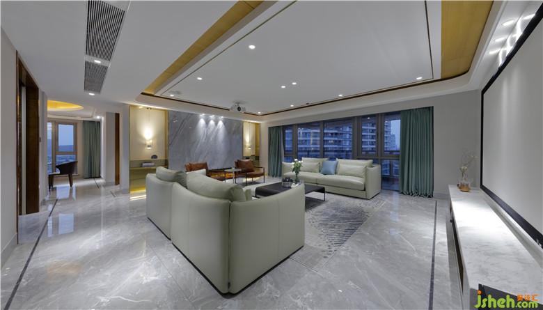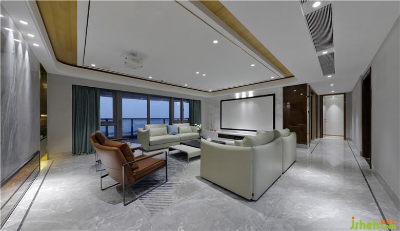 把环境带进生活,把生活带进环境。宽达6米的落地窗将室外美景展露无遗,尽入眼底的是一幅令人心旷神怡的海景画卷。大尺度的落地窗开合有度,美好的阳光照进室内,地面上荡漾微光,沙发的柔软,金属的华贵,水晶的璀璨、香氛的甜美、音乐的共鸣……空间不仅是视觉的,更是人的五感可以感受和触摸的。