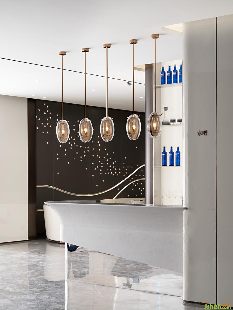 伴着散落花瓣一般的水吧台背景,在圆弧吊灯的衬托下,带来亲和的视觉观感,为就坐于此的人们提供梦幻的生活情境,只管尽兴享受当下