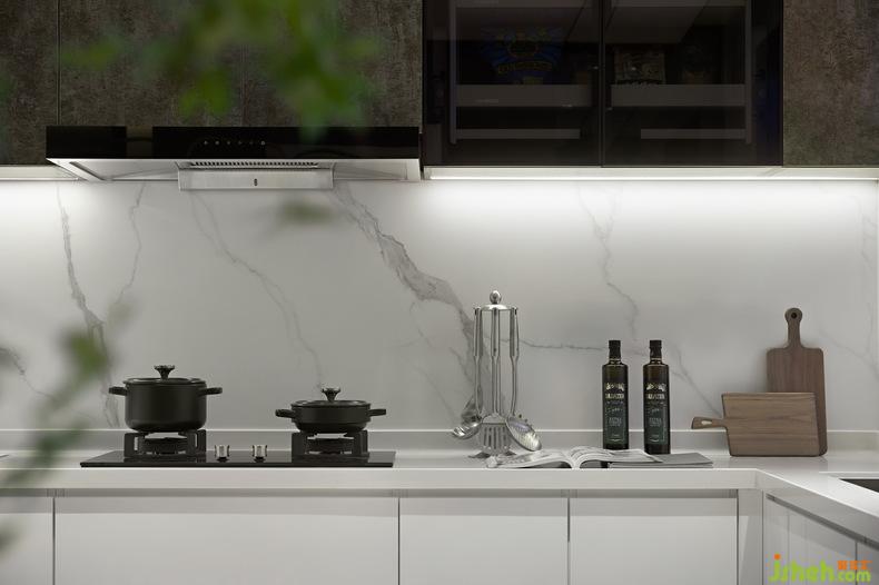 步入餐厅,设计师将原本餐厨独立的布局打通并融为一体,扩大了视觉空间,样板房设计便于家人间互动,增进彼此交流与沟通。功能上区分中餐料理区与西餐烘焙区,让美食拥有多种诞生形式,满足家人的味蕾选择