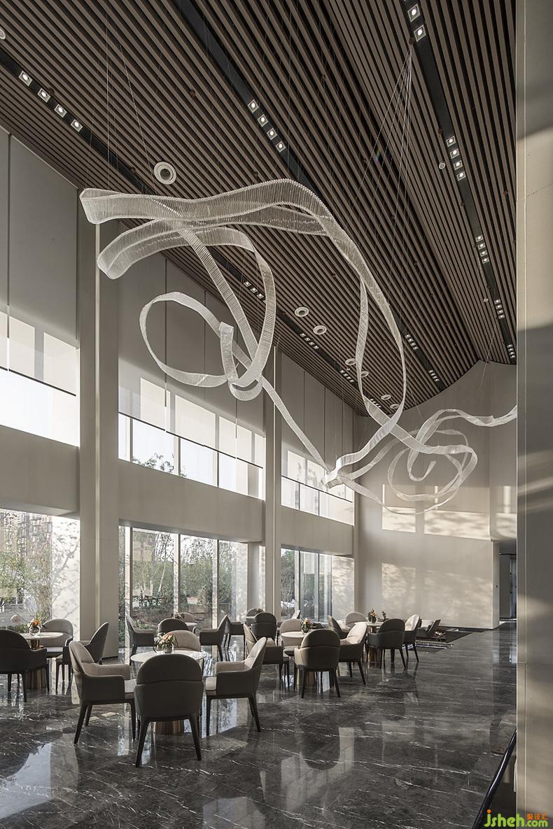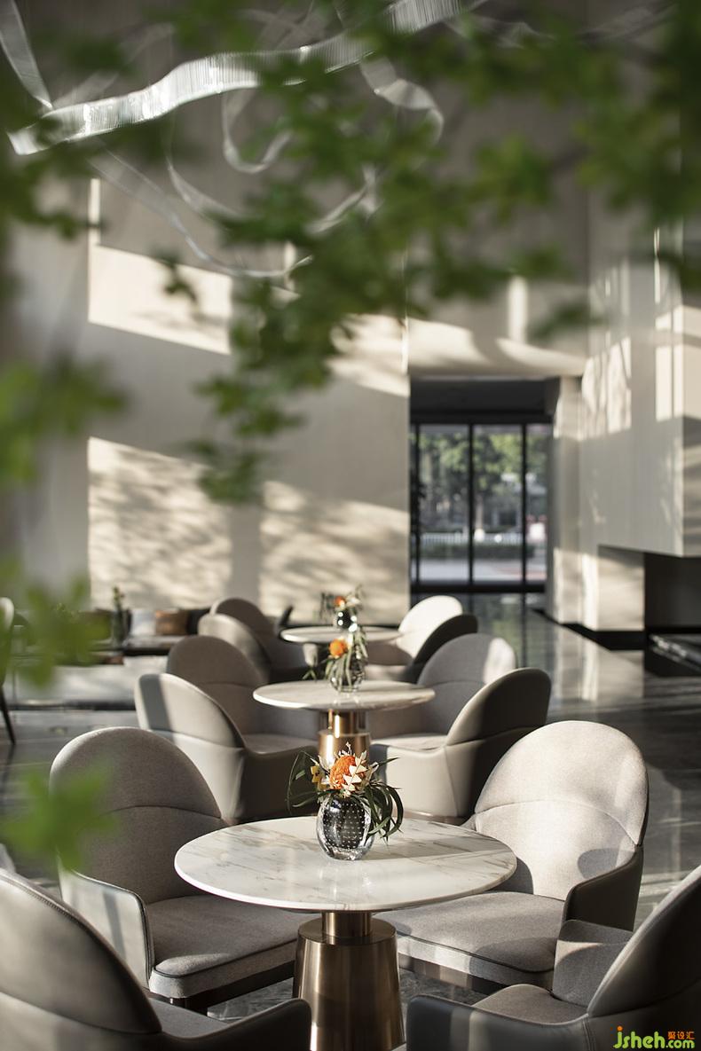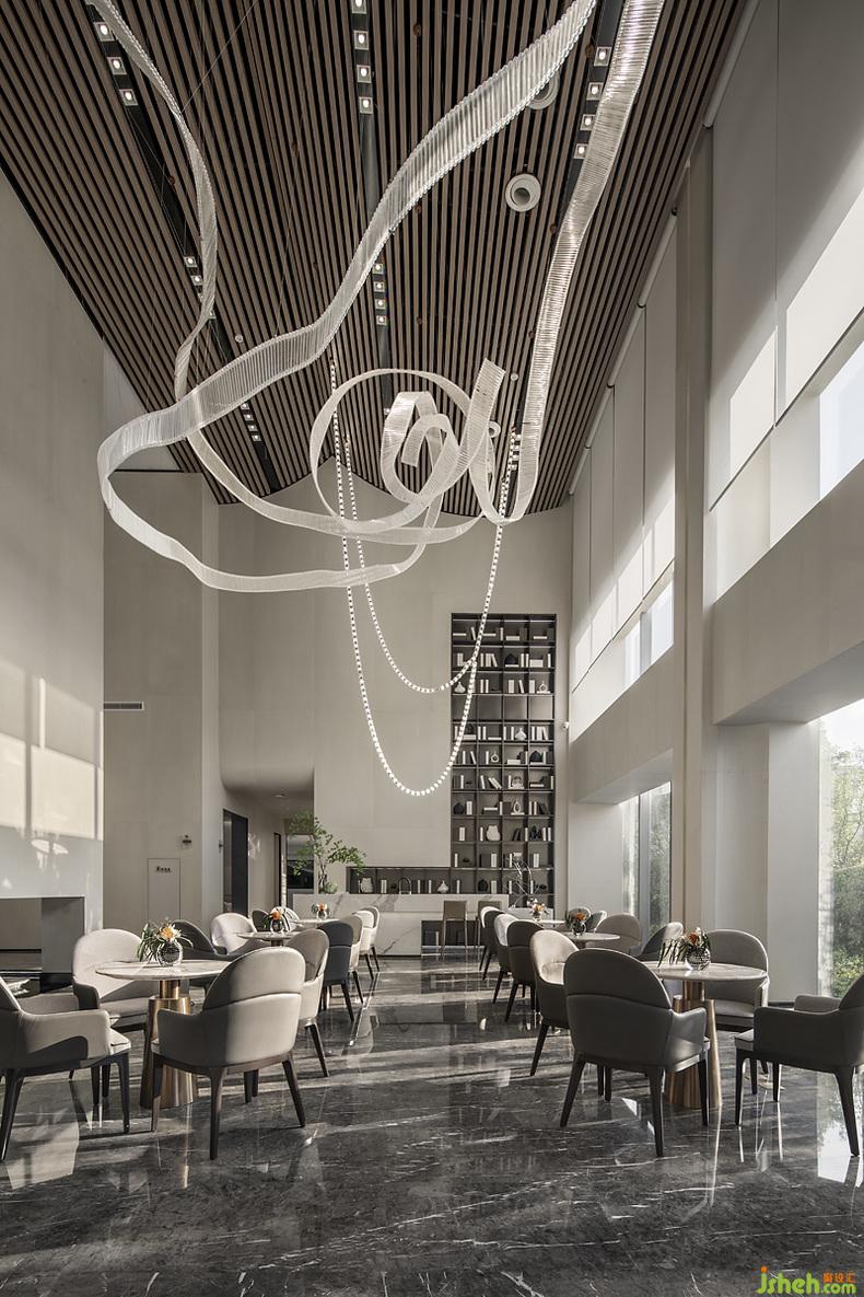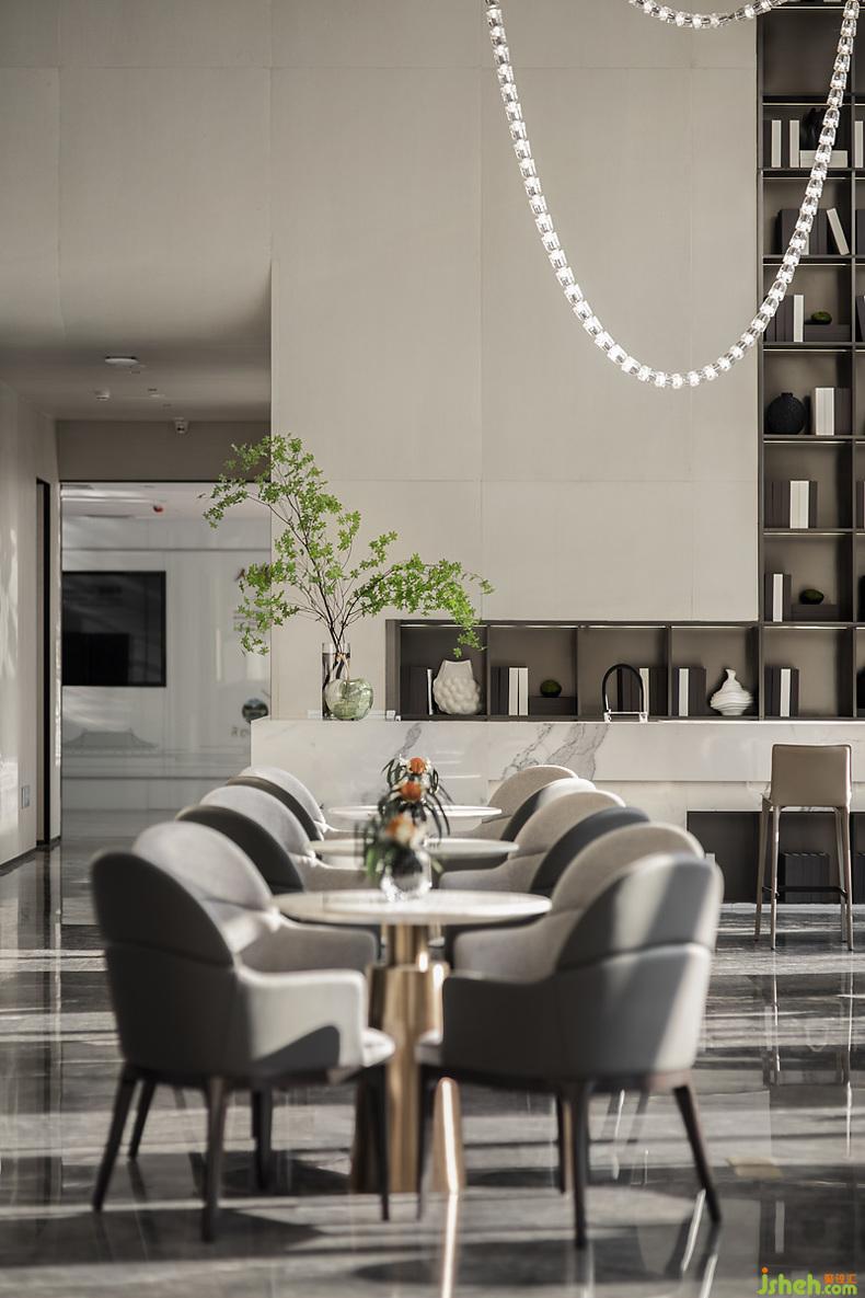 售楼处设计基于“人景交互”的理解,洽谈区以大面积落地窗和开放式的布局,打破空间之间的界限,拉近景观与室内的距离,让自然的气韵于内外自由穿梭。