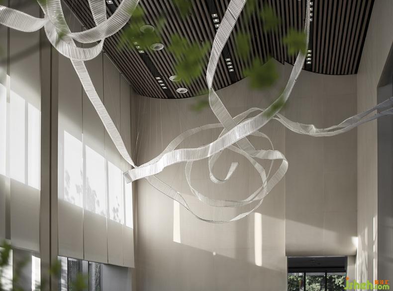 水影斑驳伫立在区域中,迎客招财,用现代结构的语言表达,寓意繁盛腾达之意。在当中游走或小憩,静观水脉在万物之中,尽情乘风破浪,活跃生机。