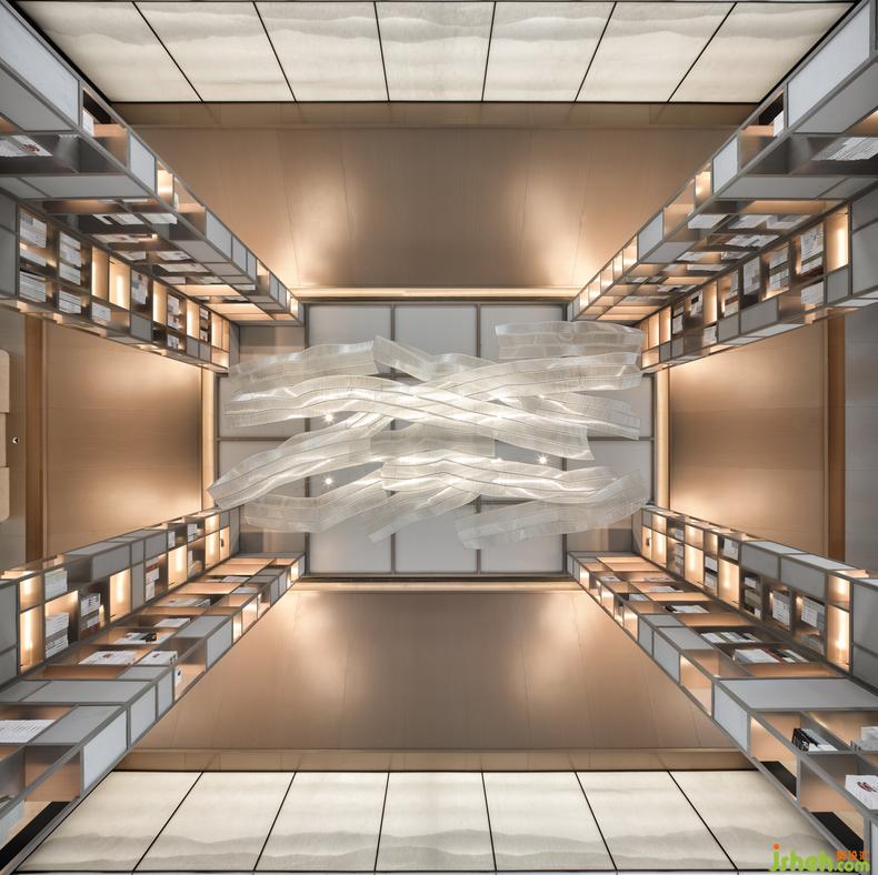 一入此间,便得天地之大观。书院文化的脉络贯穿其中,四方原木书香围合起天幕垂落的云灯,方正之间而有柔美,恰如文人雅士以书卷智慧守护玲珑之心。
