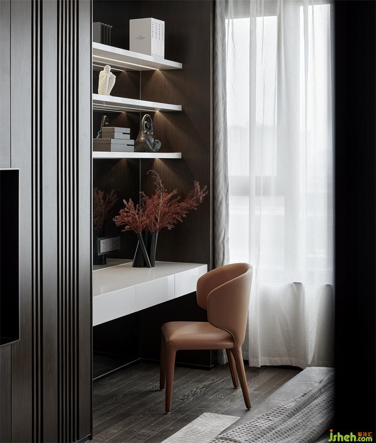 茶室是客厅与餐厅之外的一隅僻静之地,也是与友可静静品一壶乌龙茶的清幽社交的空间。
