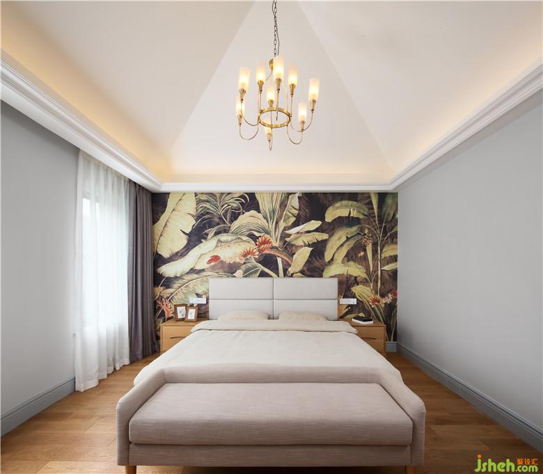 父母房床头大片的芭蕉风景床头墙背景引人驻足浮想联翩。别样的视觉呈现,足以在第一眼捕获人的欢心。卧室设计从传统艺术形式的留白、简约中提取元素,室内设计师沿用简练、雅致的设计笔触。素色墙纸和原木色地板奠定了整个空间温暖舒适的基调,蓝灰色线条提升了空间的张度,自带时尚与浪漫。纯粹的色彩,质朴的材料,光影的变化,创造出室内空间所需要的温润情感。虚实相生形成妙境,完美得演绎出现代设计的纯粹精神,阐释着生活的禅意。