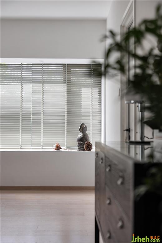 灰色系的百叶线条在白色的基调中勾勒出美妙的光影,洒满阳光的午后,指尖弹奏出美妙的乐章,爱犬自在地在空间游走。私宅设计在这里,焦虑的情绪瞬间舒缓,疲惫的身体得以安放。
