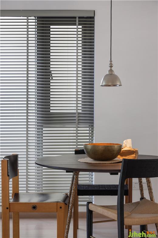 餐厅是空间的焦点,横向空间的延伸,为开放式餐厨提供舒展愉悦的用餐环境。私宅设计深色置物柜点缀其中,木色餐桌椅搭配银色金属吊灯,不同材质和色彩的碰撞平衡了空间视觉,呈现出丰富的层次感。一体化嵌入式的简约橱柜设计,与整体空间氛围和谐呼应。厨房另一端为洗衣区域,不同空间相互流动,收放有序。