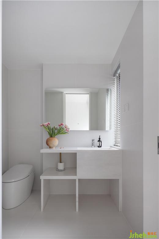设计师深度考量居住者的使用体验,私宅设计在初始空间布局上构建L型洗手间,为身体创造更加舒适的尺度。通体的白延续空间主旋律,为居住者营造清新纯净的沐浴环境。