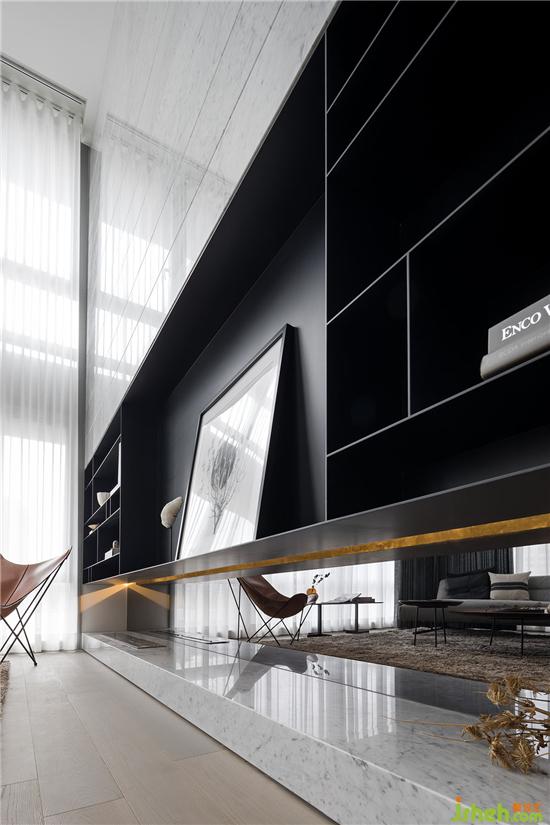 挑空的室内大厅,利用量体的层叠延续了空间视觉,我们利用了先天给于的自然条件,让大面积的阳光洒落在每一个角落里,延续了自然光的元素。别墅装饰