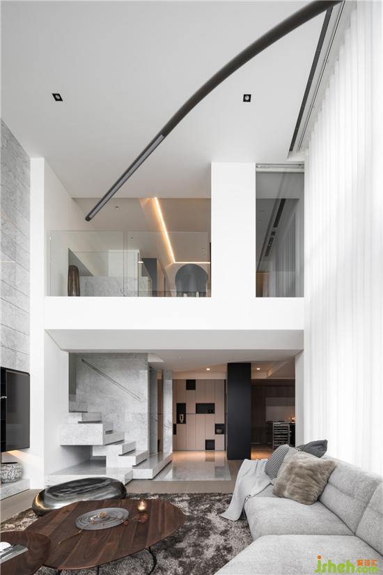 空间架构在简洁形构中带入各种材料的原始样貌,家具错落有致的陈列及灯具的点缀,加深整个空间细节体验。