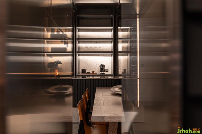 鱼鳞板造型的鞋柜作为玄关与餐厅空间的中介量体。