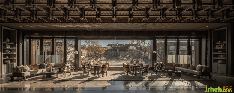 石景山售楼处室内以东方“禅意”为整体的设计风格,引用“画境”为设计理念,以画为轴演绎传统东方的人文空间。整体布局顺应建筑与景观“四水归堂”的空间概念,转回深借,通过一园三进的空间体验,演绎传统之美.鹤起霄云落,飞宇晴空时。亭台氤氲处,不胜人间楼。