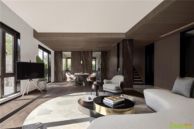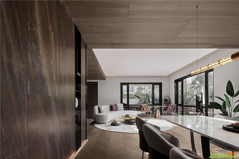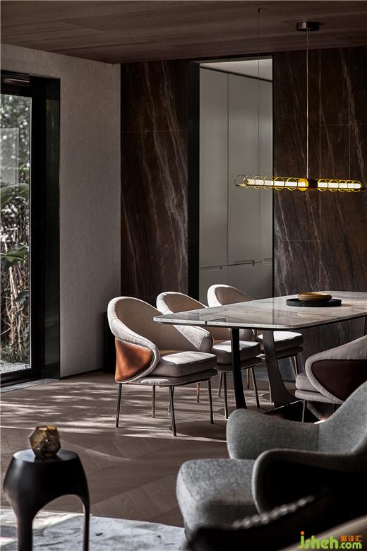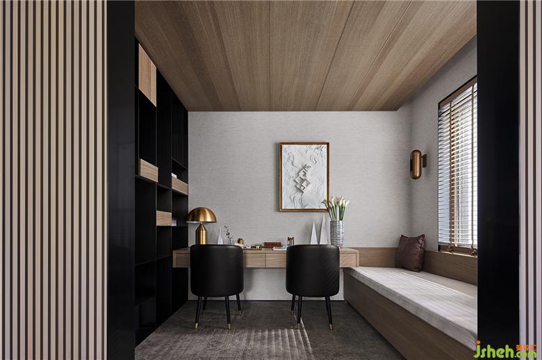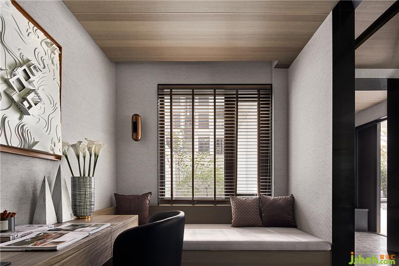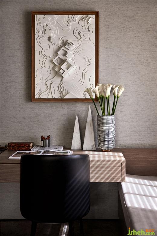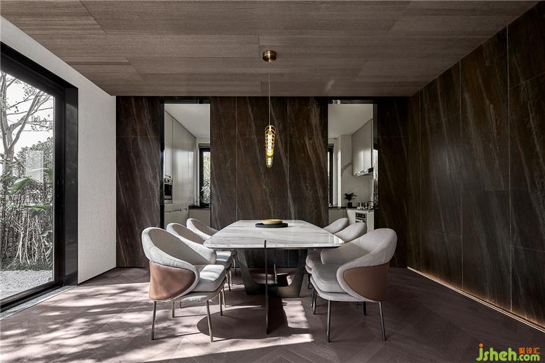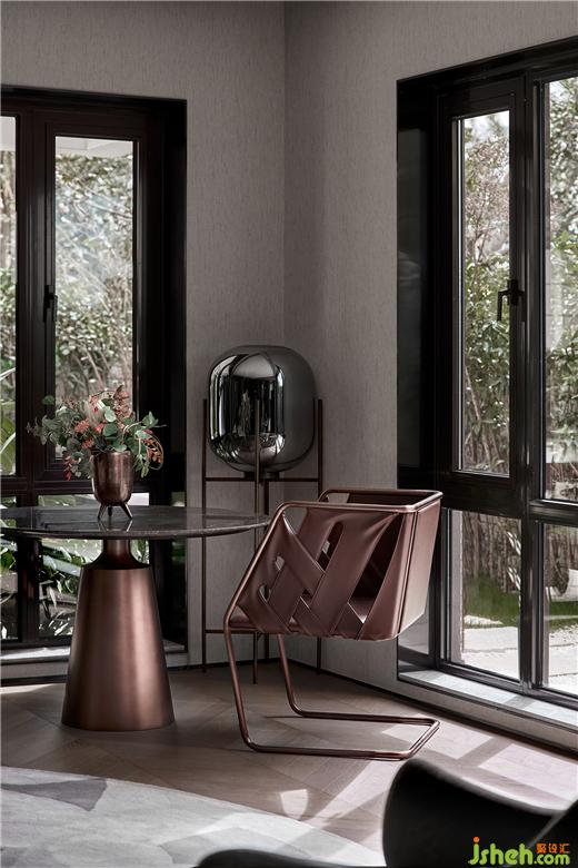样板间设计以瓦片元素作为茶室主墙满砌,穿过瓦片之间的交合,依照颜色与错落的方式,光线循着不同方向的反射,象是约定好的样子,形成墙体的明暗分割,渐弱的向上,适度地消逝,光线的停留暂访,感受到时间的存在与声音的关系,从全力以赴的合鸣,到不发一语地离去,采光天窗在瓦片上形成的光影对比,暗室微光,点缀着一抹红,将时序凝结在此片刻。