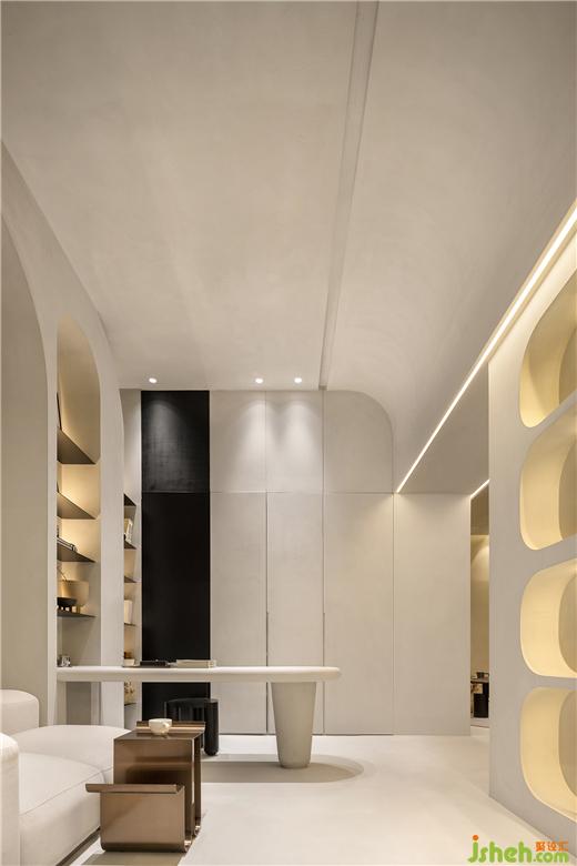 地下层空间溫柔呈現材質的纹路 从视觉到触觉的感受 享受寂静间旋律节奏的变化利用不同层次的灯光勾勒出空间线条随行走动线淡出淡入