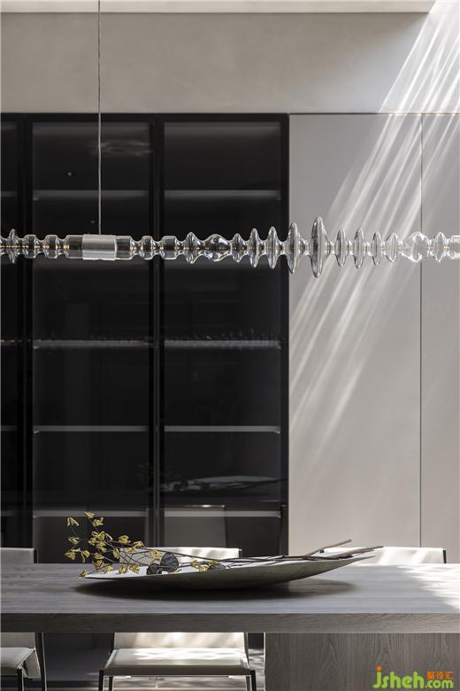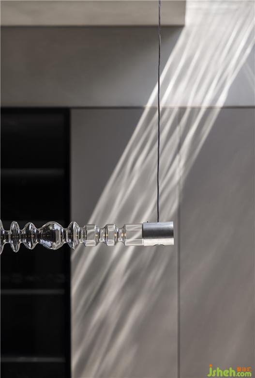 运用建筑手法创造睡眠区斜向的天花,组合柜体的序列,形成空间层叠的艺术梦境